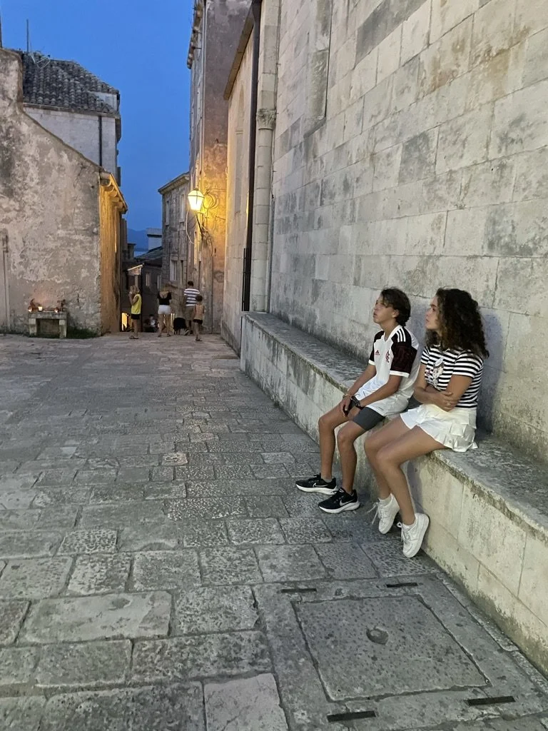 In this photo I sit with my family, about to eat dinner in front of the setting sun and beautiful walls in Dubrovnik. This trip was incredibly special to me because I was able to see a whole new part of the world. Aboard the sailboat, I saw countless islands and people, while learning about the rich history from the boat's captain. Above it all, I was able to spend time bonding with my family and creating more memories together.